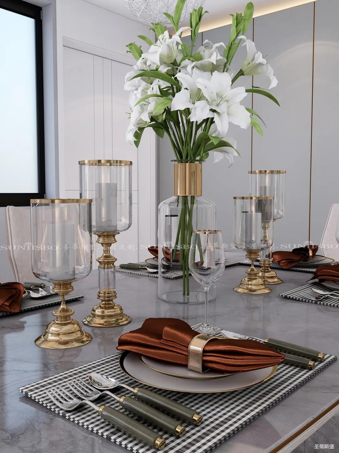 一束百合成了整个空间焦点,配套餐具是我和老公为新家精挑细选的,它让用餐氛围充满了仪式感,让我们在家的每一用餐时刻都像是在向对方深情告白。